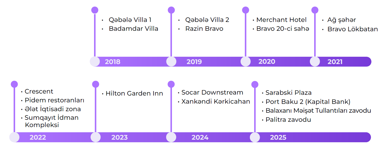 Layihələrin tarix ardıcıllığı ilə xronologiyası aşağıdakı kimidir