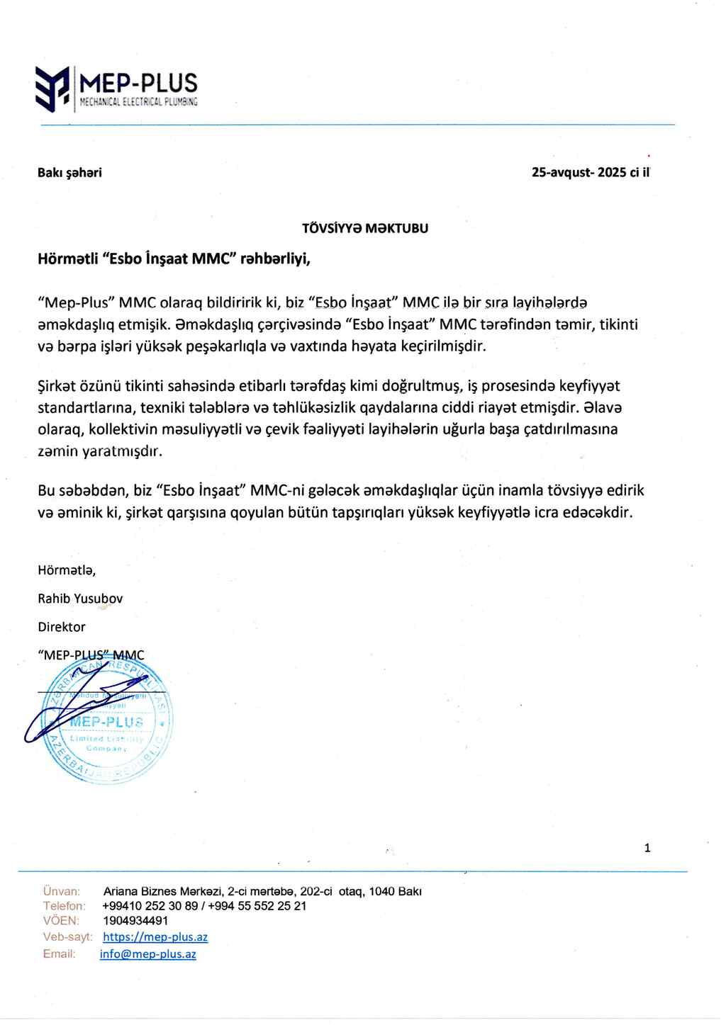 Məqsədimiz: Hər bir layihədə texniki mükəmməllik, keyfiyyətə sadiqlik və müştəri məmnuniyyəti təmin etməkdir.